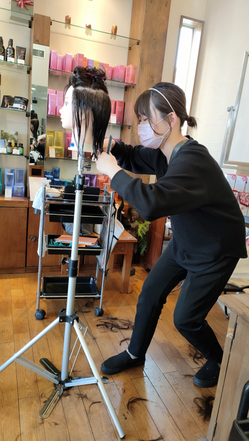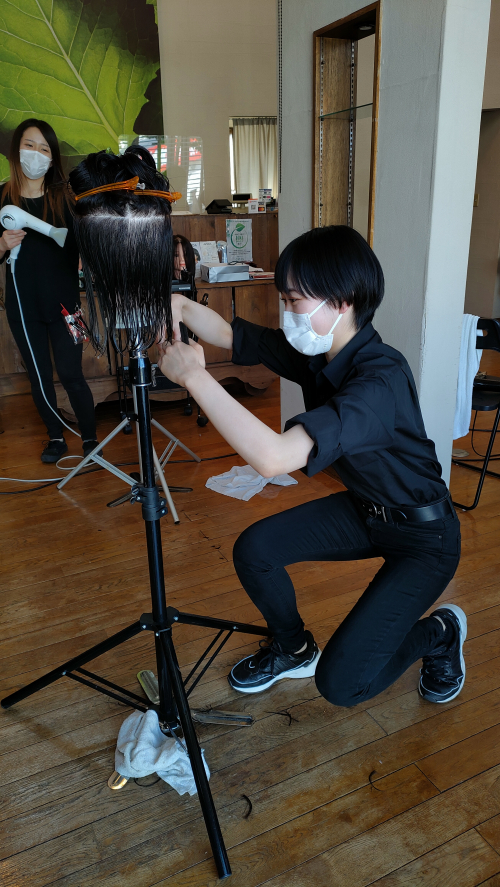2年目の鍋田さん、下坂さんは今回からカットのトレーニングに入りました!