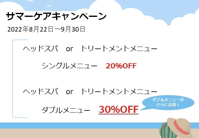 【ヘッドスパ・トリートメントキャンペーンのお知らせ】