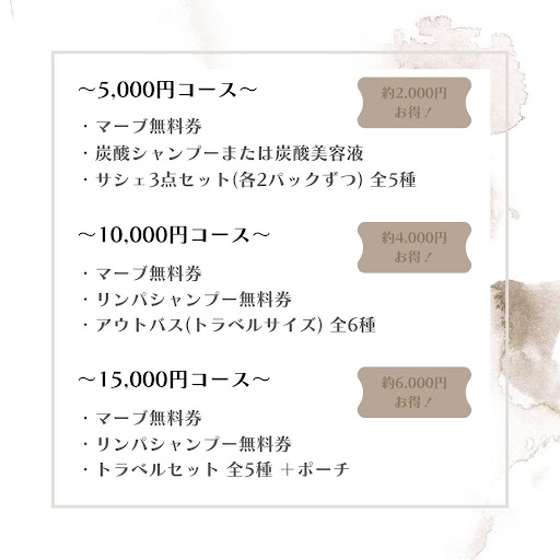 リィーフで取り扱っている商品を購入した金額によって、素敵なサービス品をプレゼントになります。