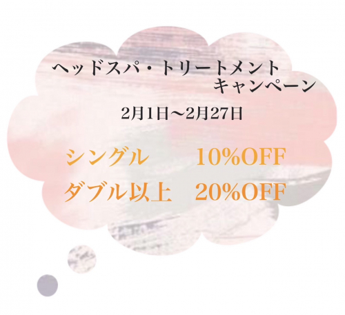 2月からリィーフでは2/1~2/27まで「ヘッドスパ・トリートメントキャンペーン」が実施されることになりました✨